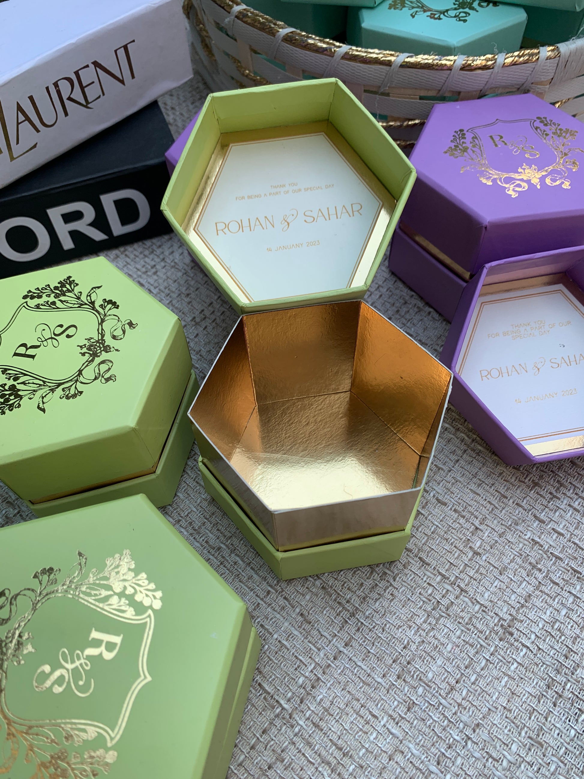 Beautifuly Crafted Hexagon Box with Gold Foil Finish