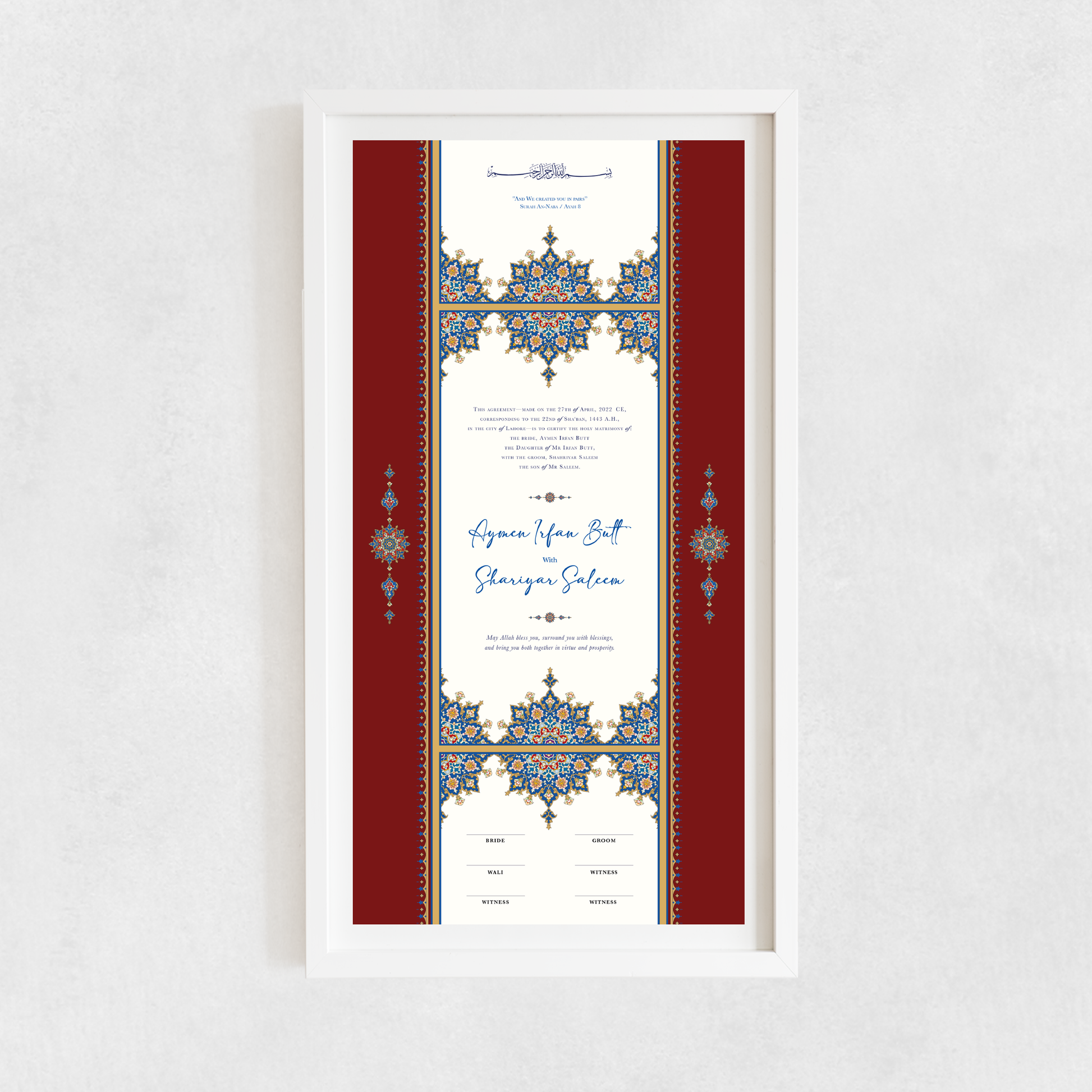 This contract is custom printed with the couple's name and wedding dates. Comes in our signature red cover with gorgeous gold-embossed flower.