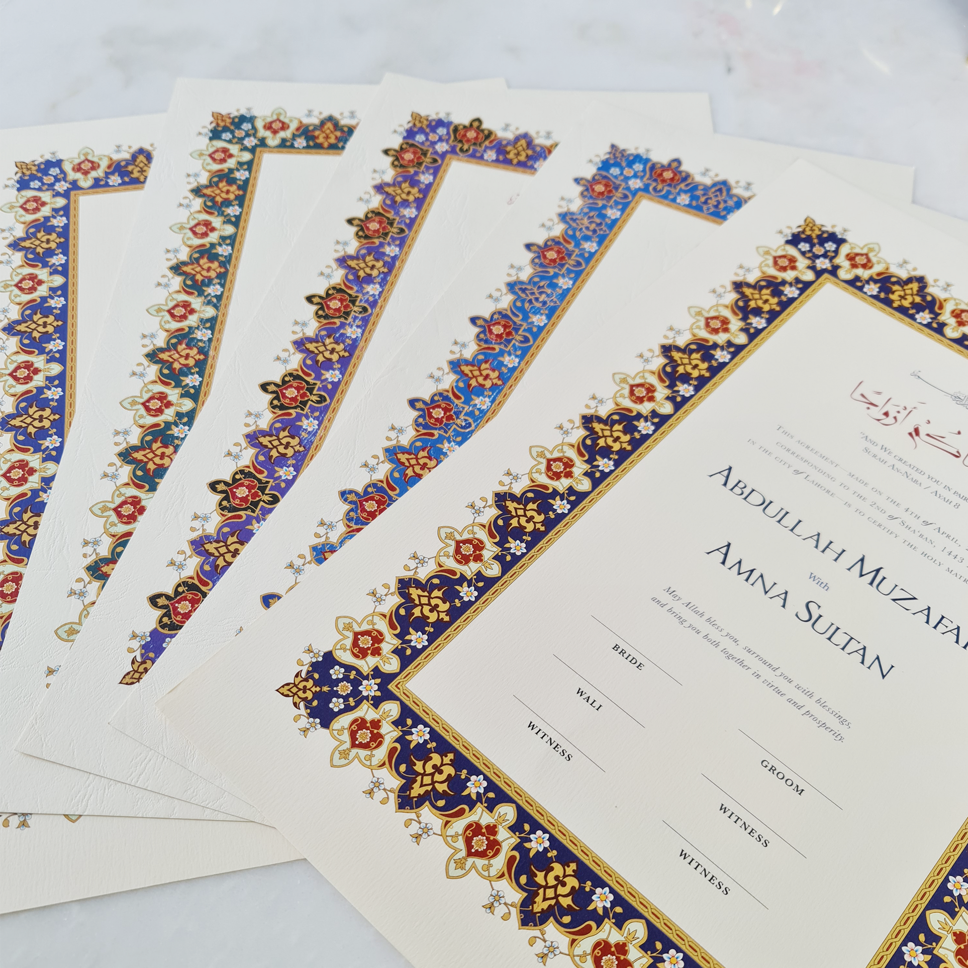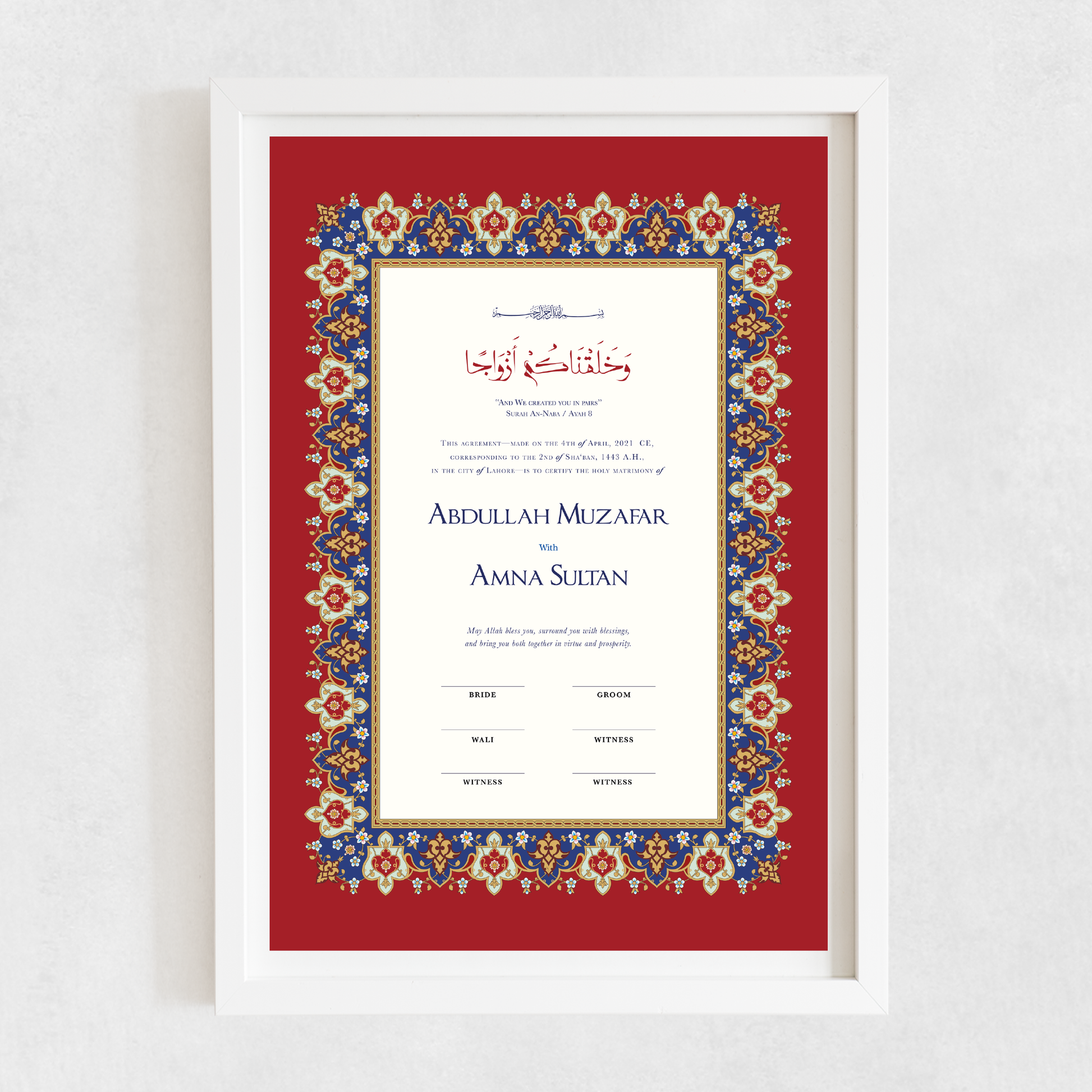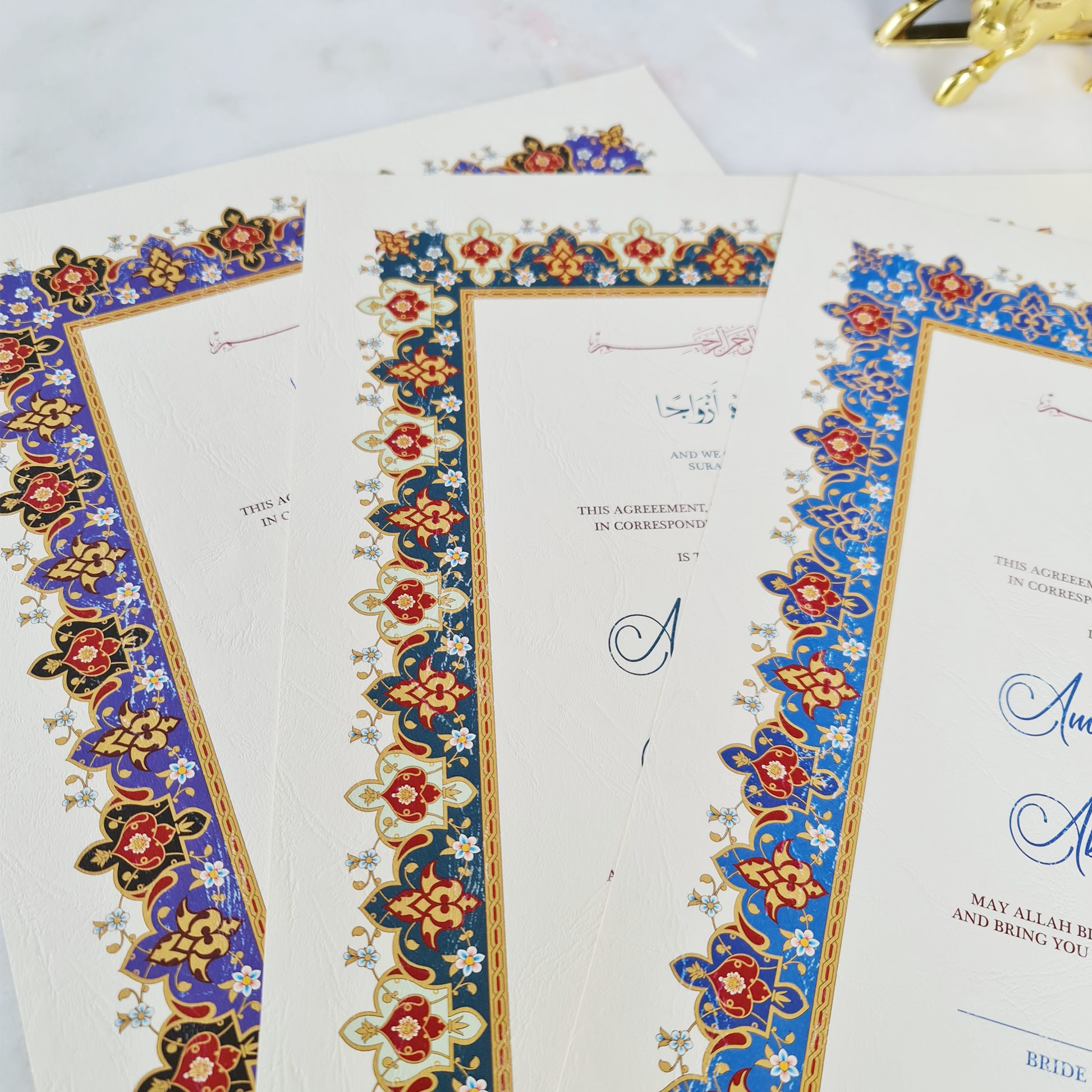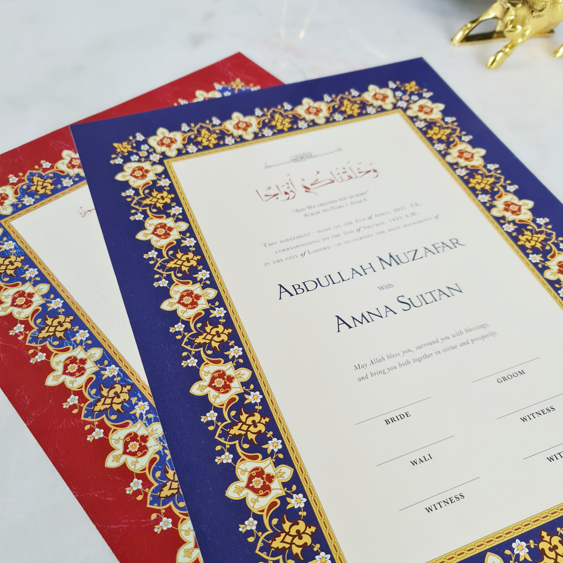This contract is custom printed with the couple's name and wedding dates. Comes in our signature red cover with gorgeous gold-embossed flower.