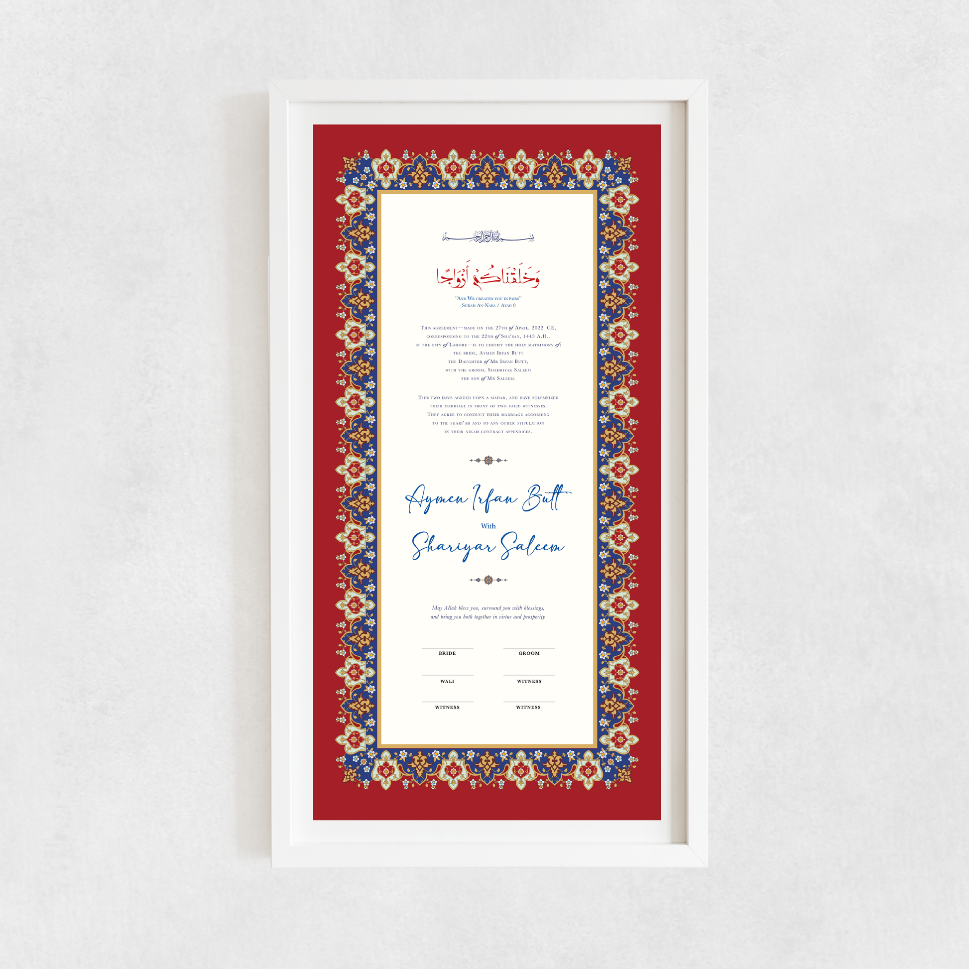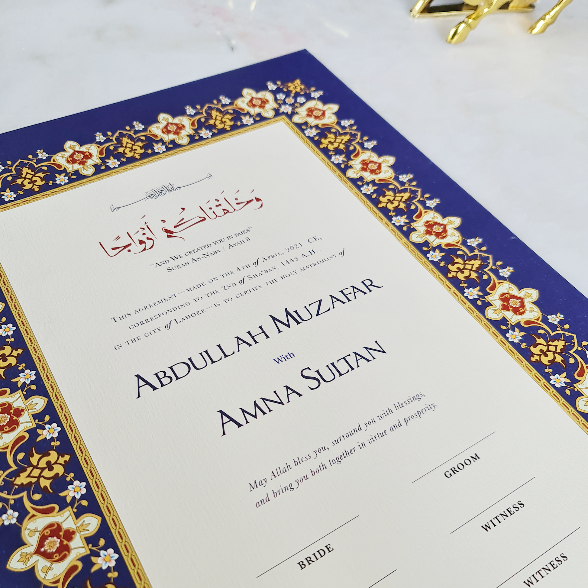 This contract is custom printed with the couple's name and wedding dates. Comes in our signature red cover with gorgeous gold-embossed flower.